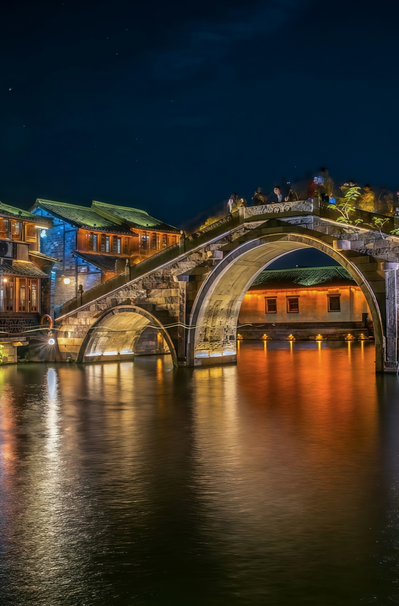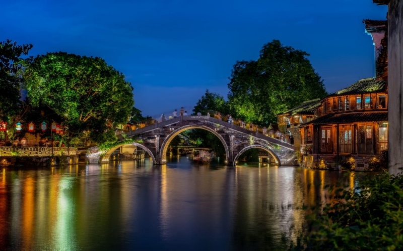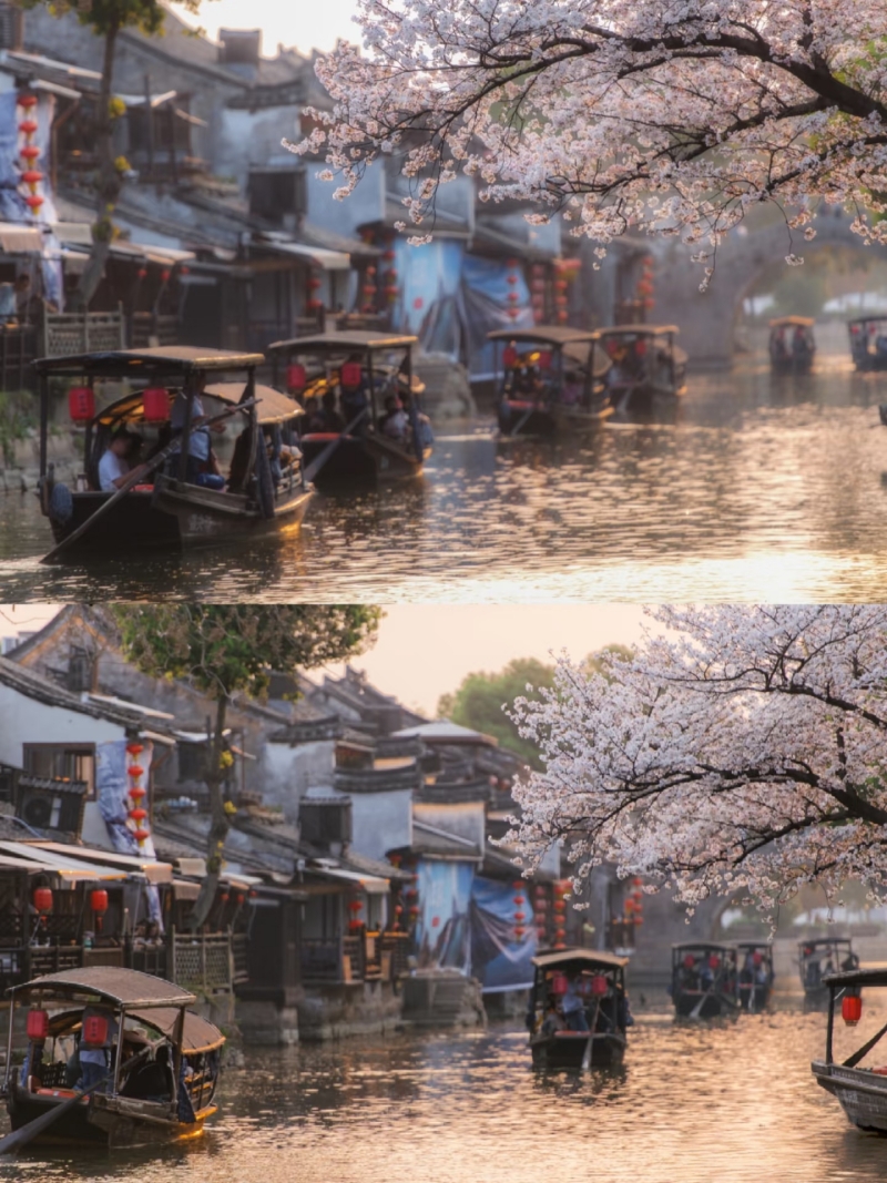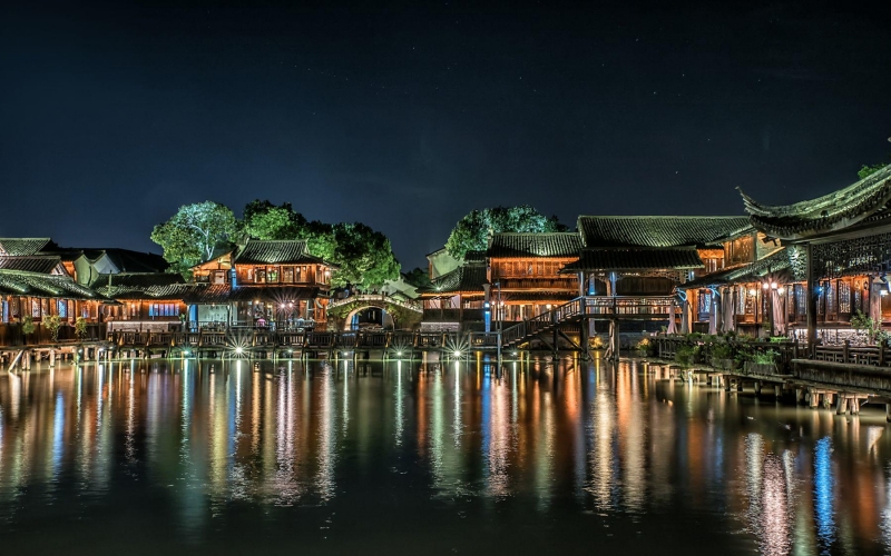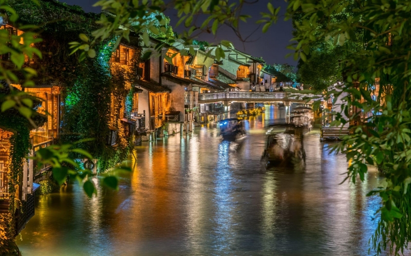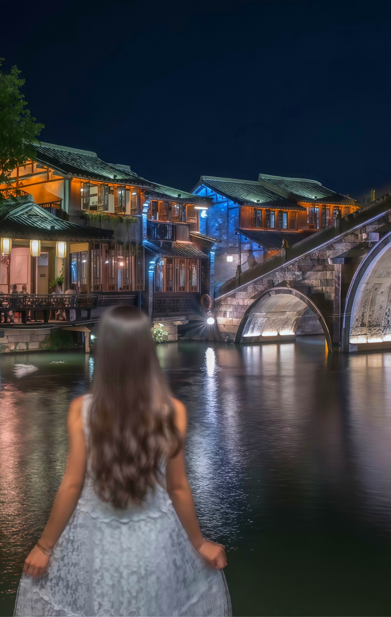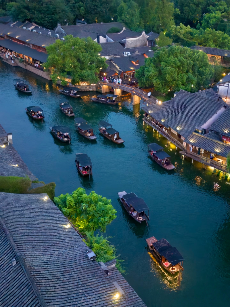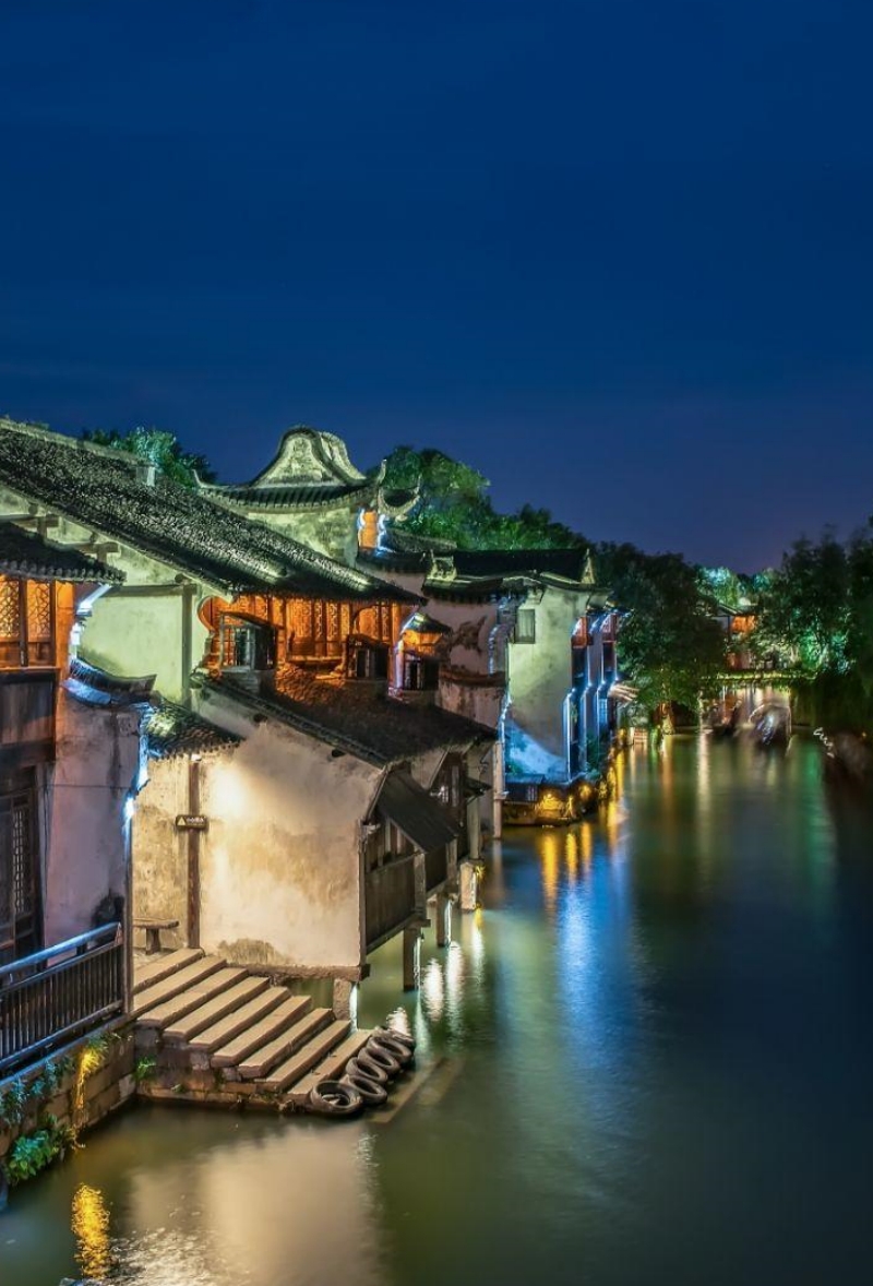 **西栅毗邻古老的京杭大运河畔,由十二个碧水环绕的岛屿组成,景区内保留了大面积的明清建筑,西栅老街横贯东西,内有纵横交叉的河道无数及形态各异的古石桥72座,真正呈现了原汁原味的江南水乡古镇的历史风貌。**夜游西栅和白天是完全不同的感受。特别是坐着乌蓬船(西栅船游是不包含在门票内的,需要自行购票)泛舟河上,河面上是被灯光映照出彩色倒影的一座座古桥,顺着河道看两岸的古建筑在色彩斑斓的灯光中呈现出新的意境,新旧交替恍然如入两座古镇,一个是昨日的班驳,一个是今日的绚烂。晚饭可以在景区内解决,西栅里种类繁多的小吃,有特色的小店,饭馆,酒吧……来了你就不想离开,巷子里的小店您细细逛,河边找个小馆您边吃边聊,再叫一杯三白酒您慢慢品,找个最佳拍摄点拍摄绝美夜景,体验当地真挚的水乡民风;
