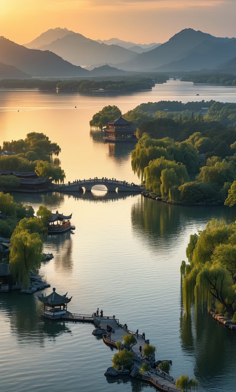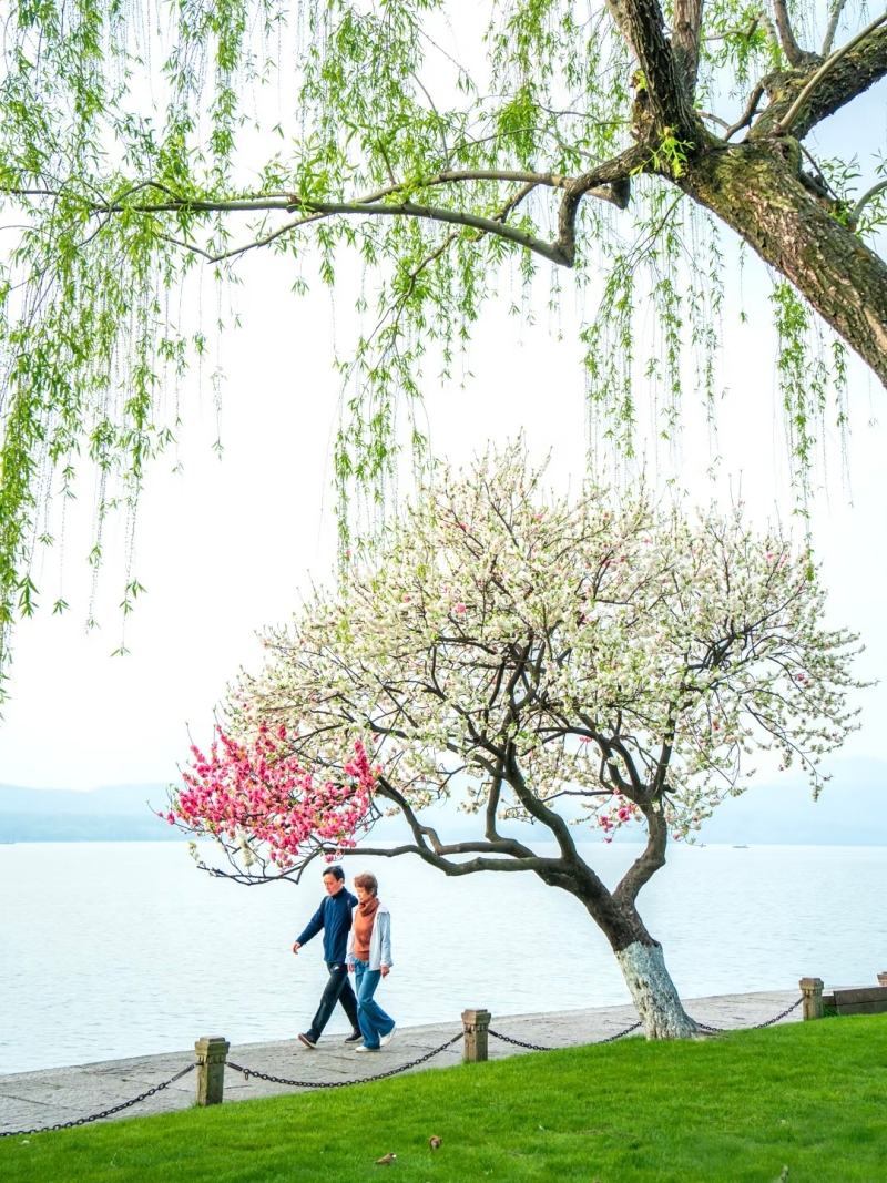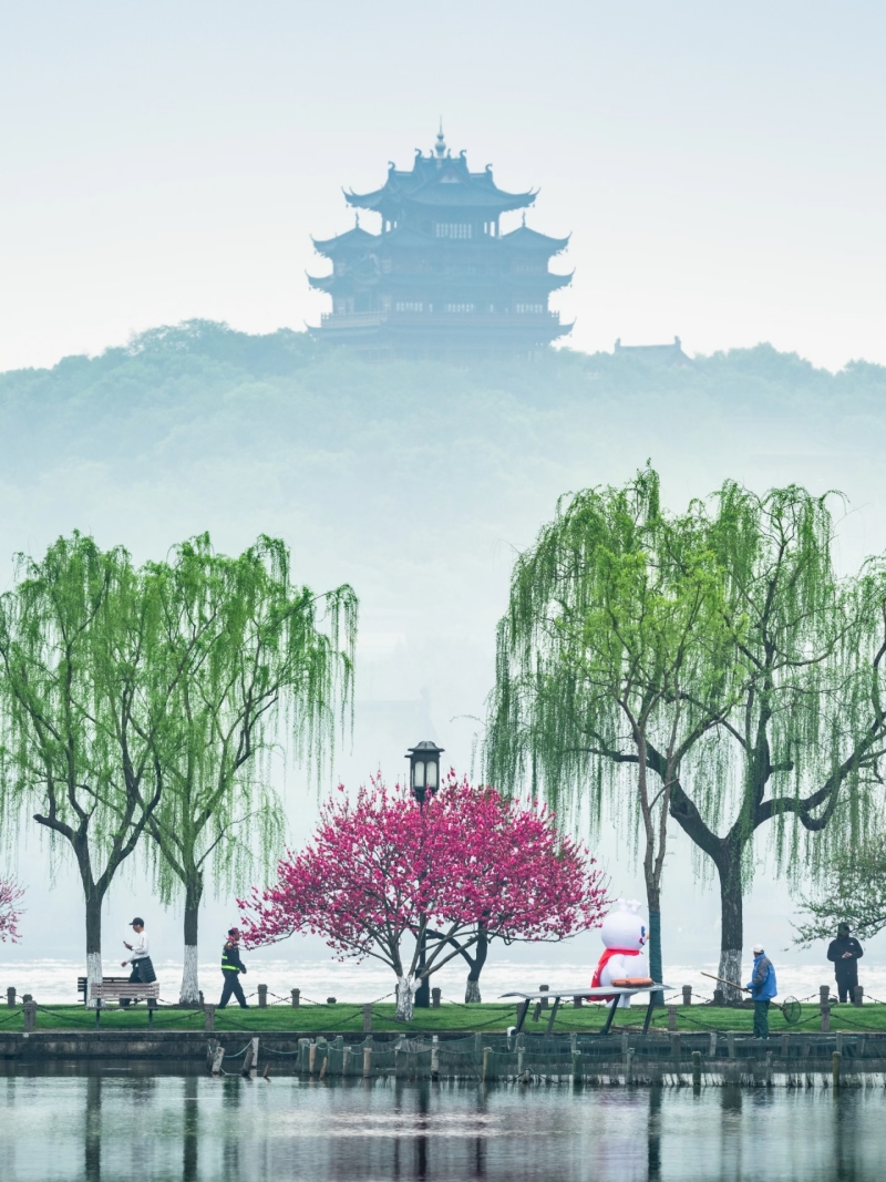 (2)适时前往杭州西湖,玩西湖可以步行、坐游船、乘电瓶车,也可以骑行;**西湖是座落杭州西城的一颗光彩夺目的明珠,亲身体会苏东坡笔下“浓妆淡抹总相宜”的西湖景色。西湖风景秀逸兼具山水之胜、园林之美,景致秀美使人陶醉不已,西湖无疑是杭州之美的代表,很有名的“西湖十景”环绕湖边,自然与人文相互映衬,组成了杭州旅行的核心地带;