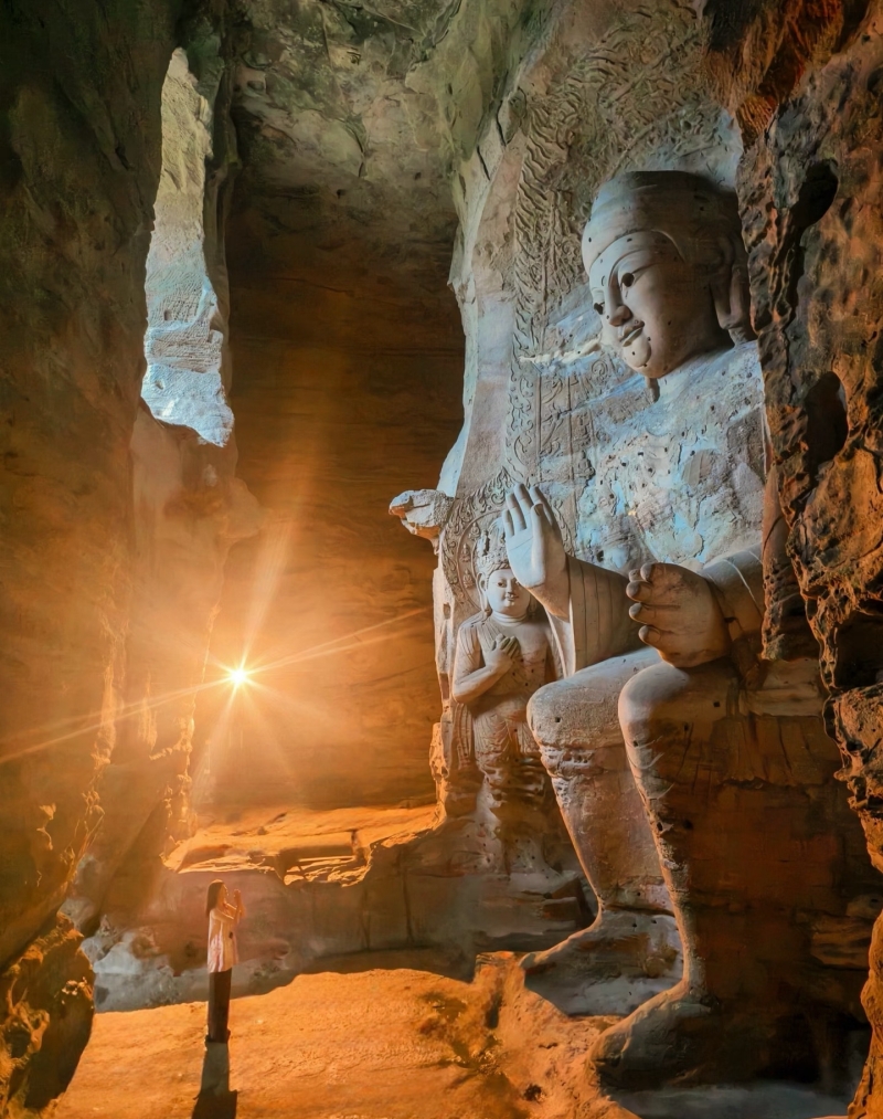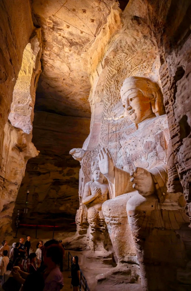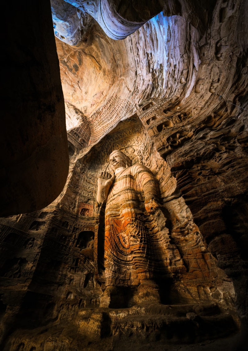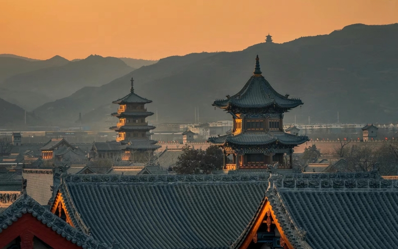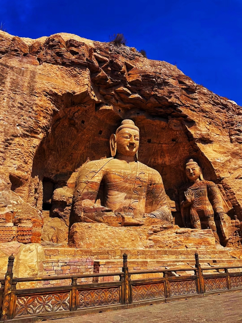 (2)约中午前后抵达悬空寺,看危楼高百尺的壮丽景观,悬空寺就像悬挂在悬崖之上,全寺为木质框架式结构,值得惊叹的是它依靠榫接结构,嵌入崖内而不倒,距今已有1500多年历史,是国内现存最早、保存最完好的高空木构摩崖建筑,诗仙李白观后醉书壮观,徐霞客赞为天下巨观;