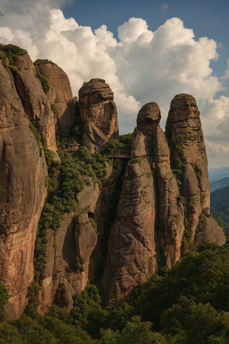 (1)早餐后前往【龟峰景区】。大家可以根据自身体力选择路线:神龟线:约2.5小时,桂花园-将军楼-好汉坡-紫薇园;霞客线:约3.5小时,神龟迎宾-百年道-天女散花-将军楼-好汉坡;全程线:约4小时,桂花园-将军楼-三道口-南天柱-骆驼峰-龟峰湖;