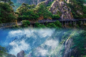 北宋诗人苏东坡在游遍了山川美景之后留下这样一句诗“揽胜遍五岳,绝景在三清”。三清山奇峰怪石林立,深谷幽壑密布,形态各异的花岗岩石与丰富的植被、远近变化的景观及震撼人心的气候奇观相结合,呈现出引人入胜的自然美。