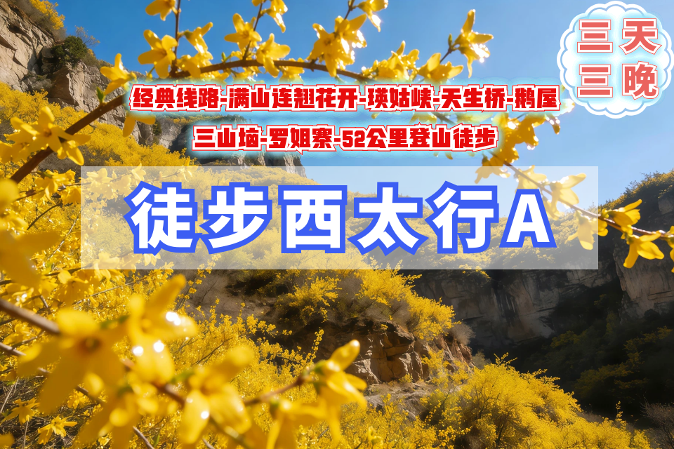 清明3天-北京集散 |【徒步西太行】A线-经典线路-满山连翘花开-瑛姑峡-天生桥-鹅屋-三山垴-罗姐寨-52公里登山徒步 [复制链接]
