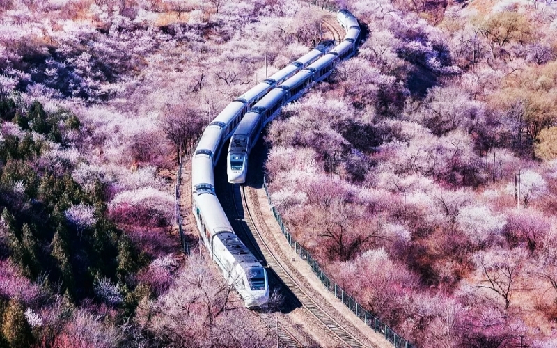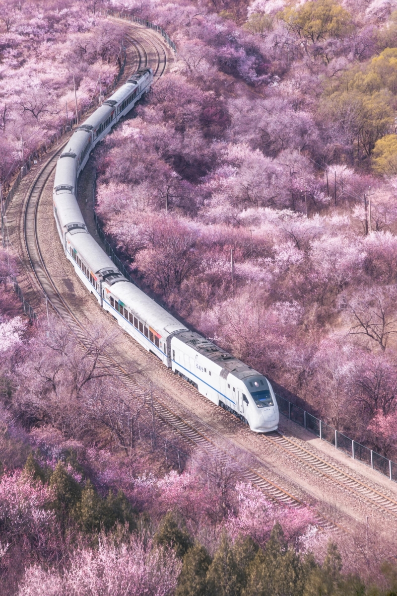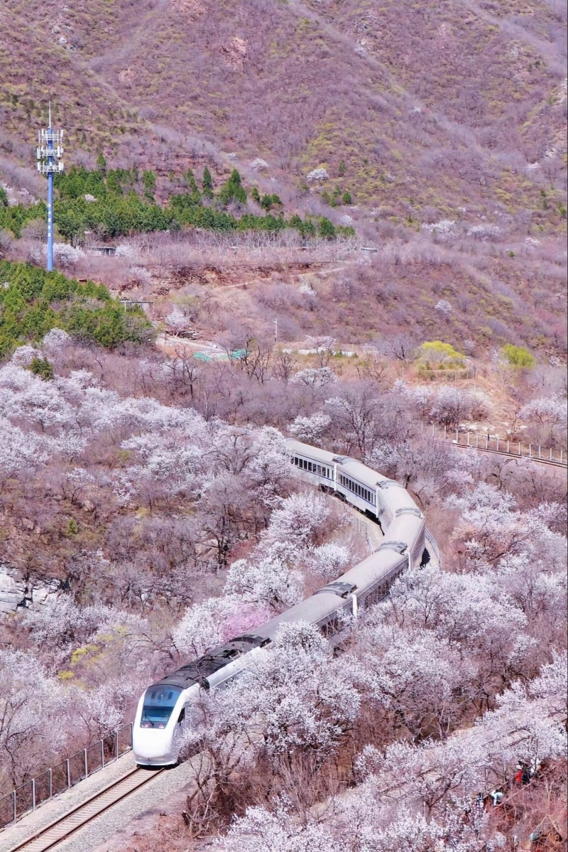 还在羡慕日本火车穿行在开满樱花的铁轨上吗?咱们家门口也有这样一条美丽的线路每年3月底4月初的时候,北京居庸关长城脚下的花海盛开,沿途枝桠花正盛,春正好。