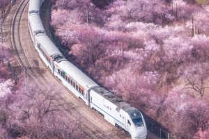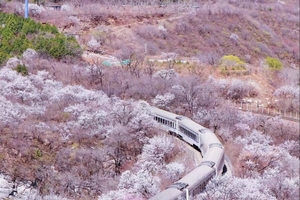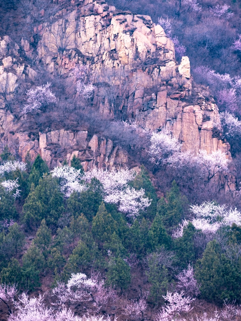 这里的花海列车美到爆炸!在居庸关长城到八达岭长城之间,梨花、桃花、各种花朵竞相开放,在居庸叠翠伴桃杏的日子里,一趟白色的列车穿越花海。