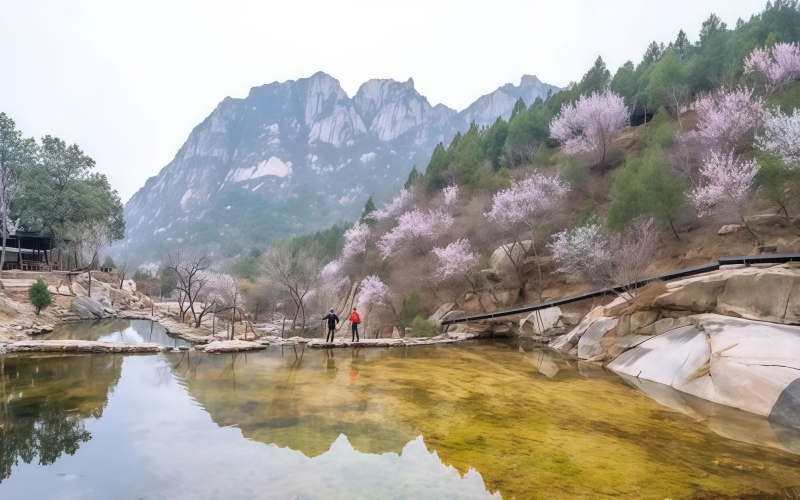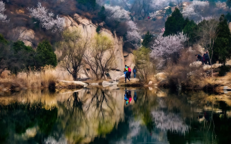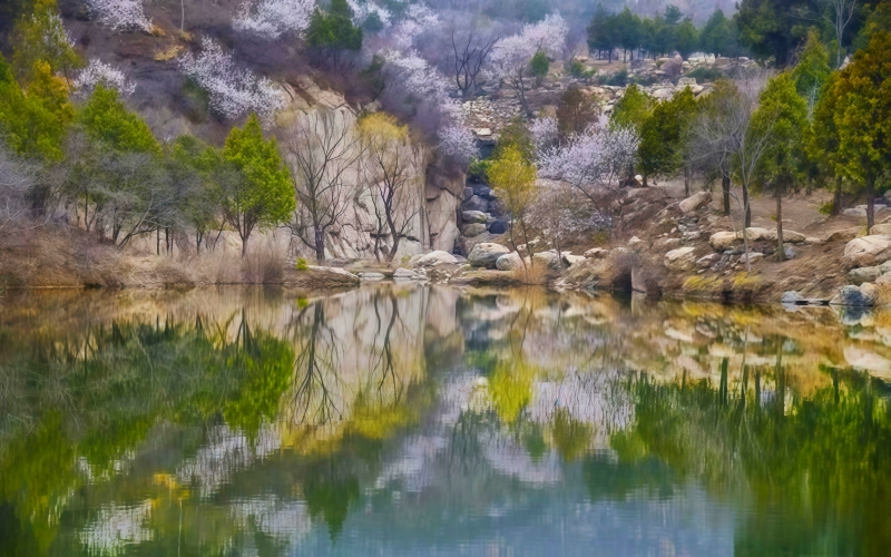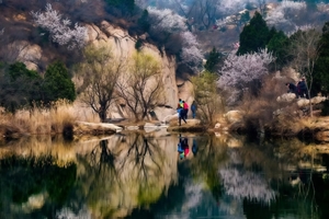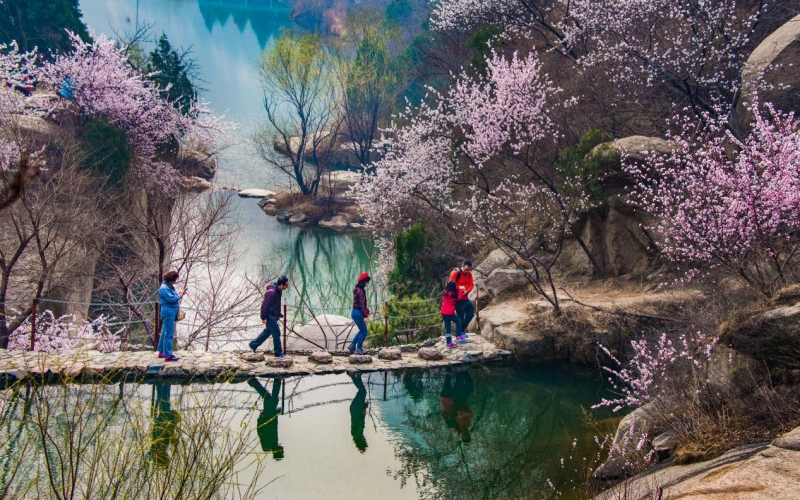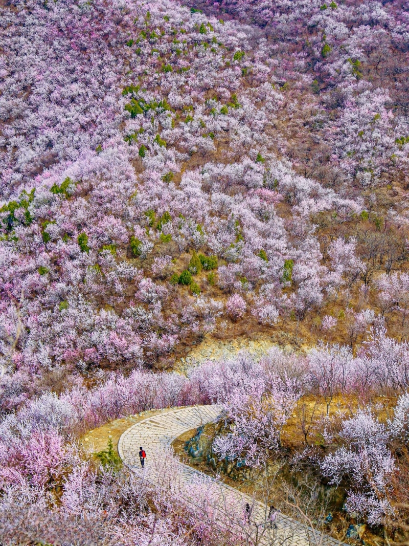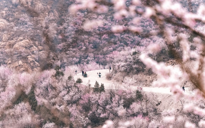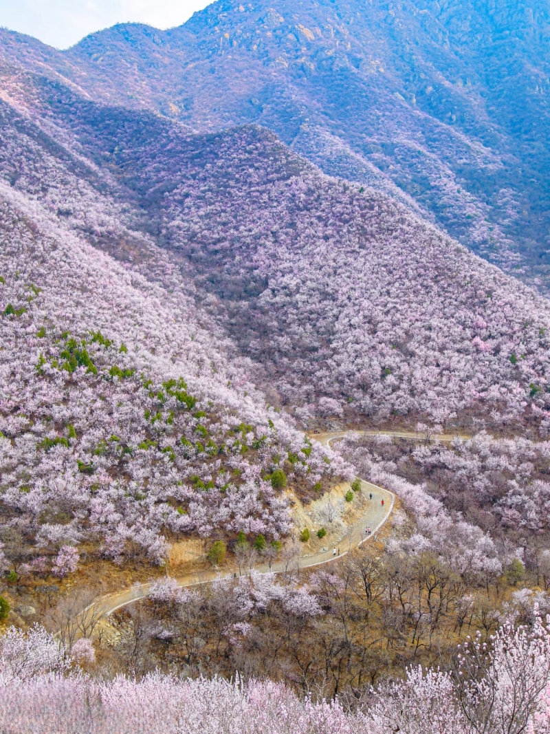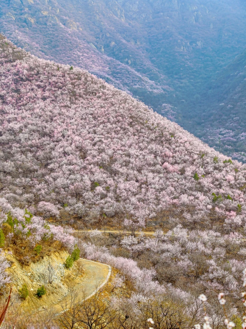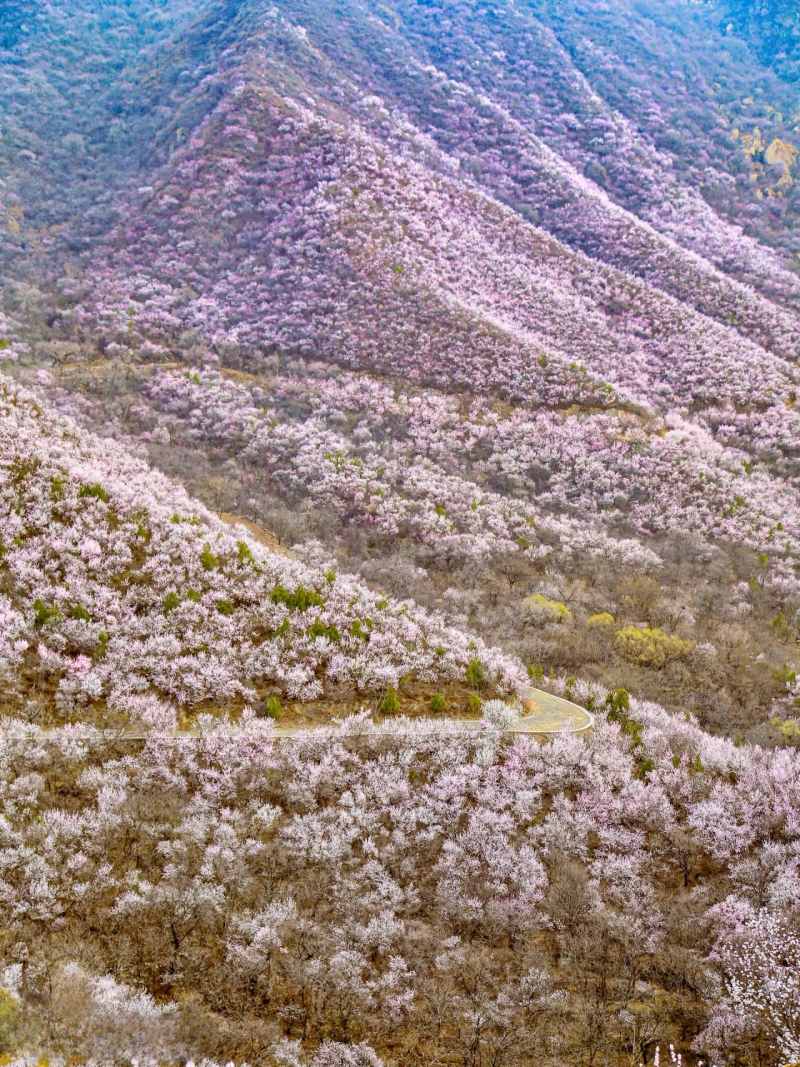 每年三月中下旬开始,北京后花园幽谷奇峡间,数十万朵山桃花、杏花竞相开放,争芳斗艳,如霞似锦。