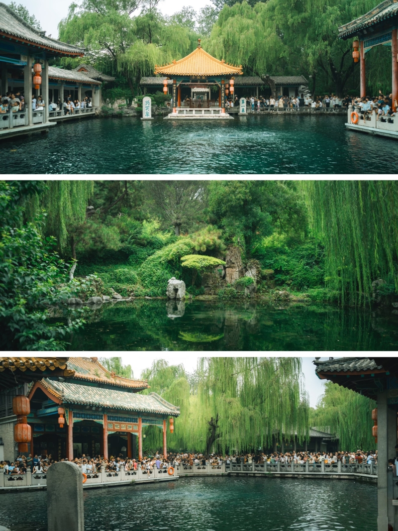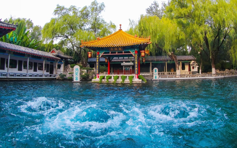 2)中午左右到达济南趵突泉公园:位于济南市历下区,南靠千佛山,东临泉城广场,北望大明湖,五龙潭。面积158亩,是以泉为主的5A级特色园林,国家首批重点公园。该泉位居济南七十二名泉之首,被誉为“天下第一泉”,也是最早见于古代文献的济南名泉,午餐可以在此附近用餐;