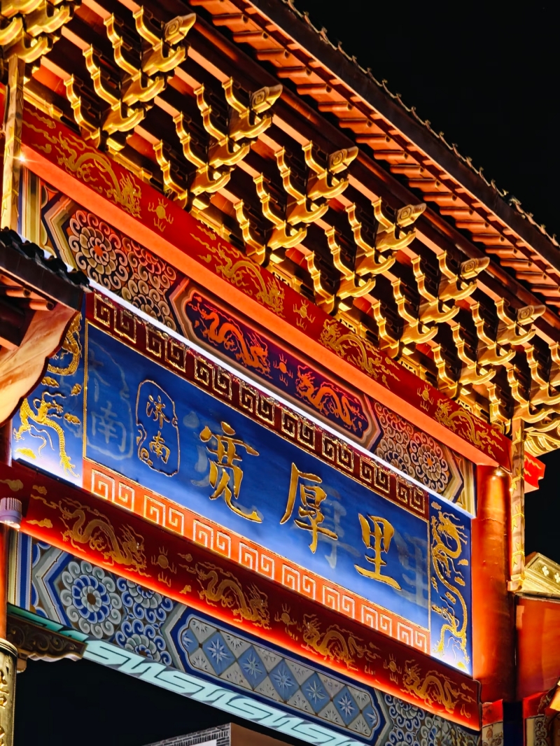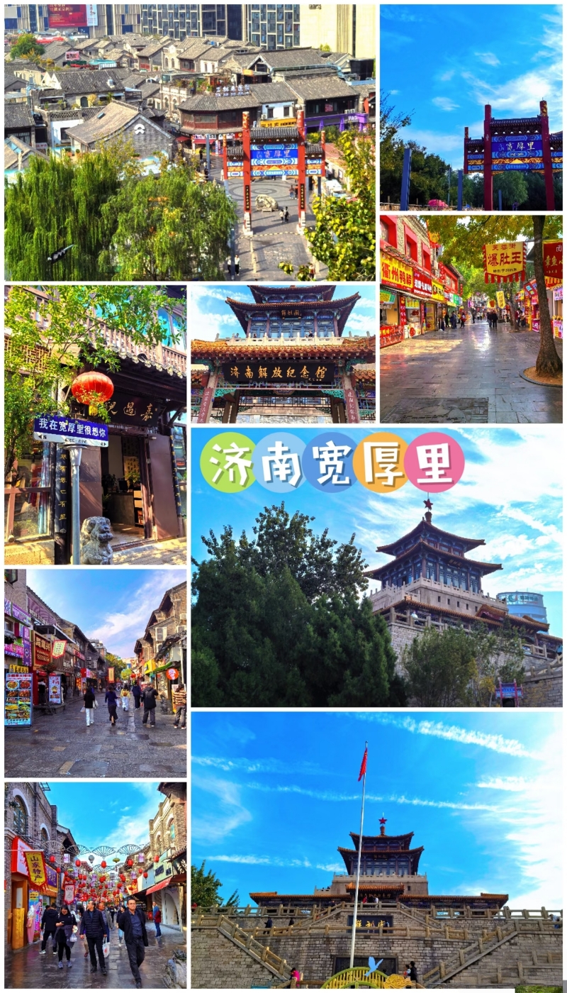 4)或自行前往【宽厚里】,又称济南宽厚里、世茂宽厚里,崭新的仿古建筑,前身为“王府南街”,或称“南王府街”,因北侧建有东、西小王府而得名;宽厚里是济南又一网红美食街,这里汇聚全国各地美食,每天吸引众多游客前来打卡品尝美食;