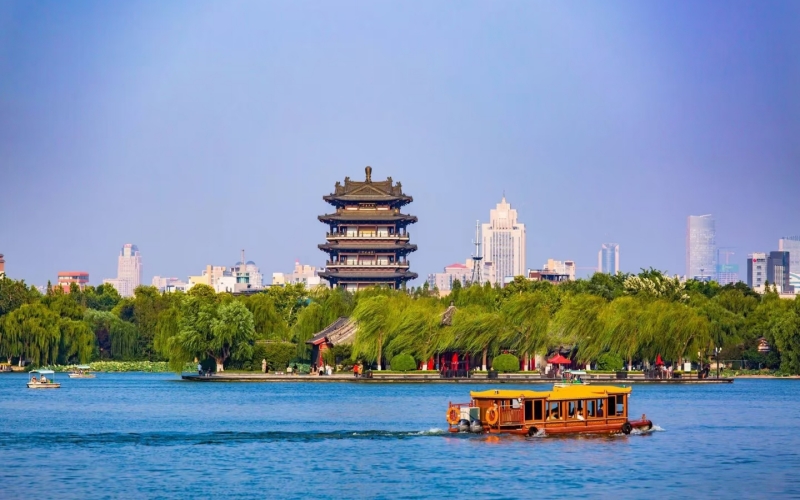 大明湖是济南三大名胜之一,繁华都市中天然湖泊是泉城重要风景名胜和开放窗口,闻名中外的旅游胜地,素有“泉城明珠”的美誉。