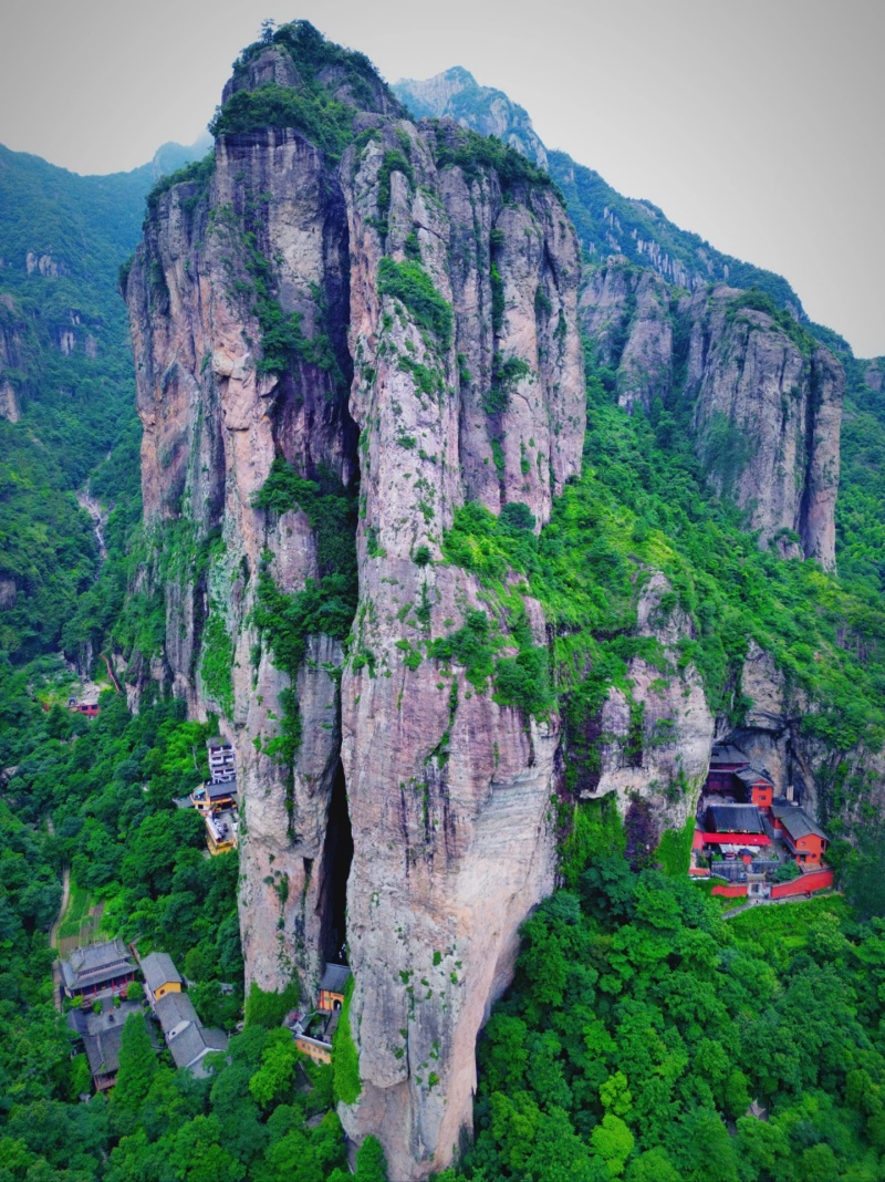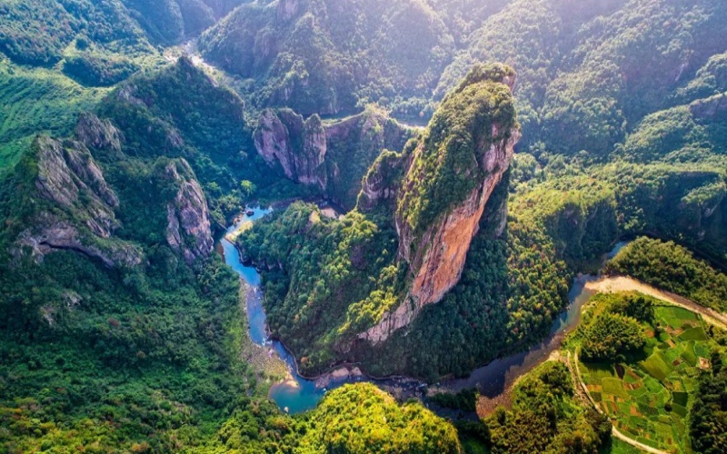 石桅岩景区三面环溪成峡,相对高度306米·堪称"浙南天柱"、"华夏之冠",其景观具有雄、奇、险、秀、幽、奥等特点,主要景点有石桅岩,小三峡,水仙洞,麒麟峰,水响岩,菠萝岩等。