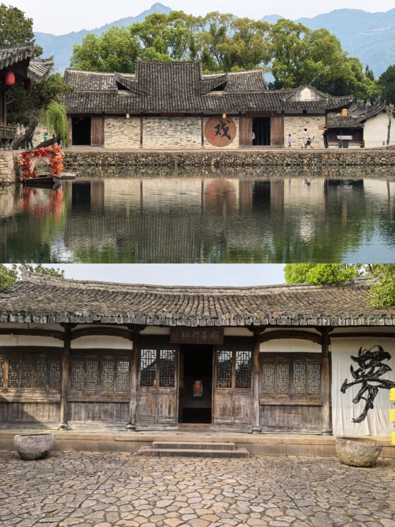 苍坡古村位于浙江省温州市永嘉县岩头镇。村落始建于五代后周显德二年(955年),为李氏宗族聚居地。南宋淳熙五年(1178年)由国师李时日重新规划,以“文房四宝”象征布局:笔街直指笔架山,五石条为墨,莲池作砚,方正村域为纸,形成全国罕见的耕读文化空间载体。1991年被列为浙江省历史文化保护区。现存寨墙、路道、祠庙及古柏等宋代遗存,完整保留了南宋村落规划原貌