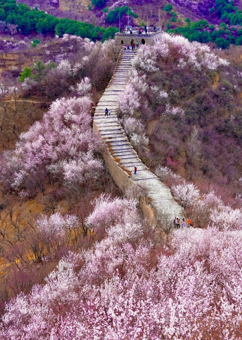 龙泉峪长城属于原汁原味的野长城,当站在长城上时,只有连连惊叹“太美了”!前方像是一条阳关大道,一片豁然开朗,长城内外山花妖娆,满目花海,就连空气都是香的。再加上途经最美赏花路,这趟绝对不虚此行。