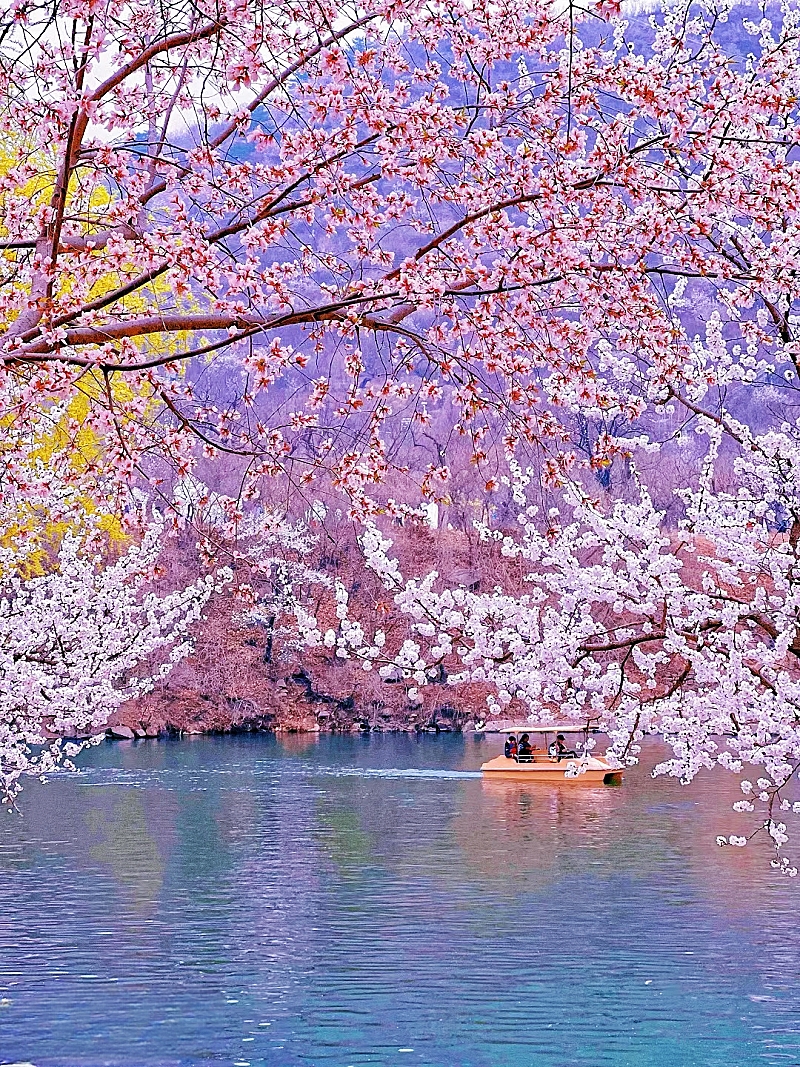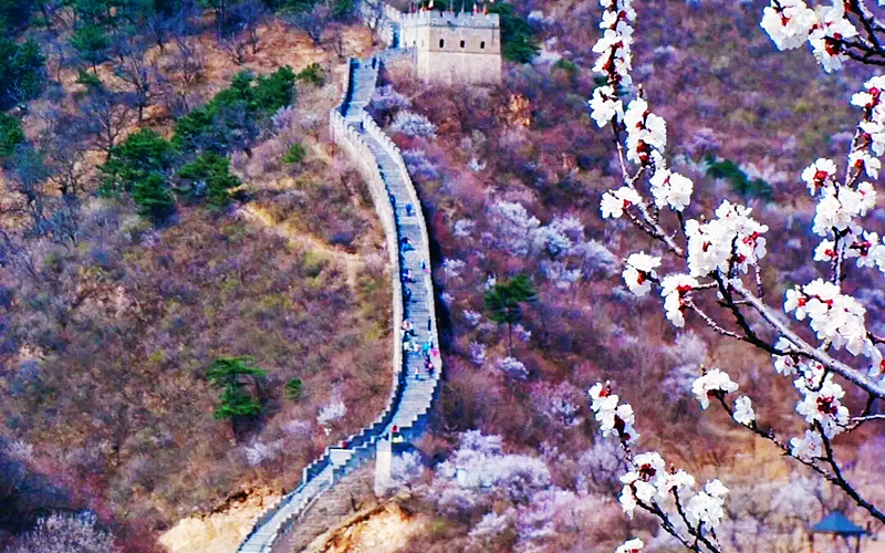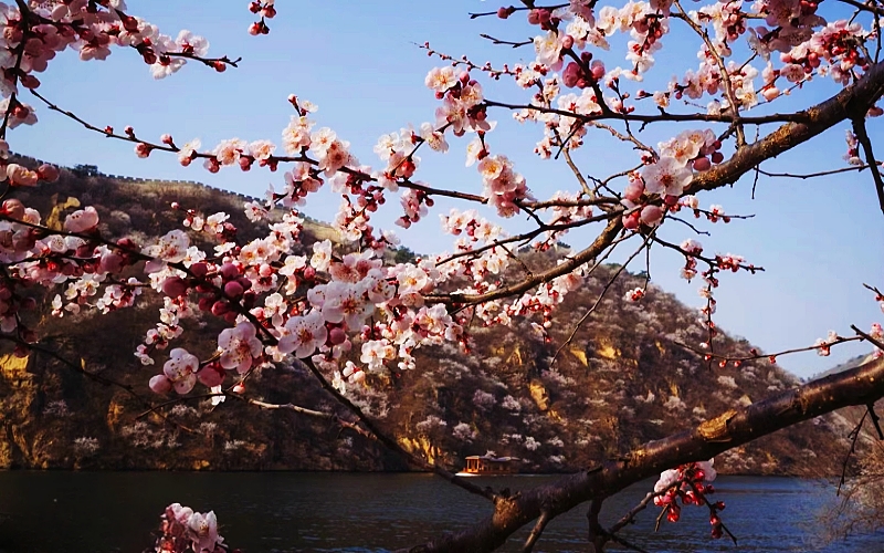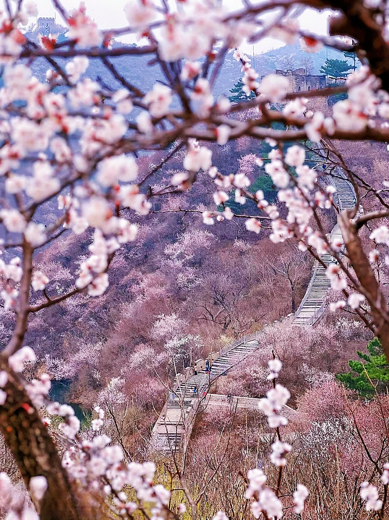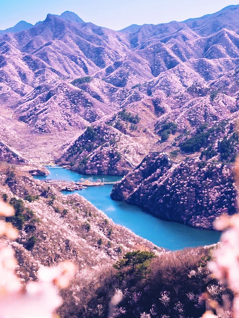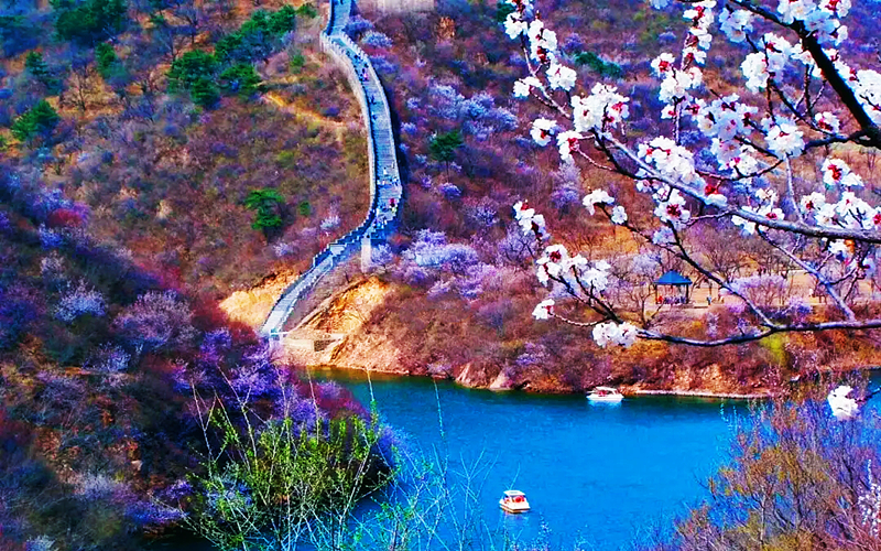 万物复苏,怀柔黄花城水长城碧波荡漾,春风拂面,漫山遍野的桃花、杏花也竞相绽放。
