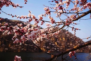 水长城物杰地灵,桃花也有了灵气,深谙“杏花宜在山坞赏,桃花应在水边看”的道理,竞相在水旁岸边开放。娇姿媚影恋春波,盈盈碧水映桃花,花光水影,娇艳欲滴。“夹岸桃花蘸水开”的美景在这里得到了最佳诠释。盛开的花蕊宛如临水梳妆的美丽少女,楚楚动人,令人心醉。