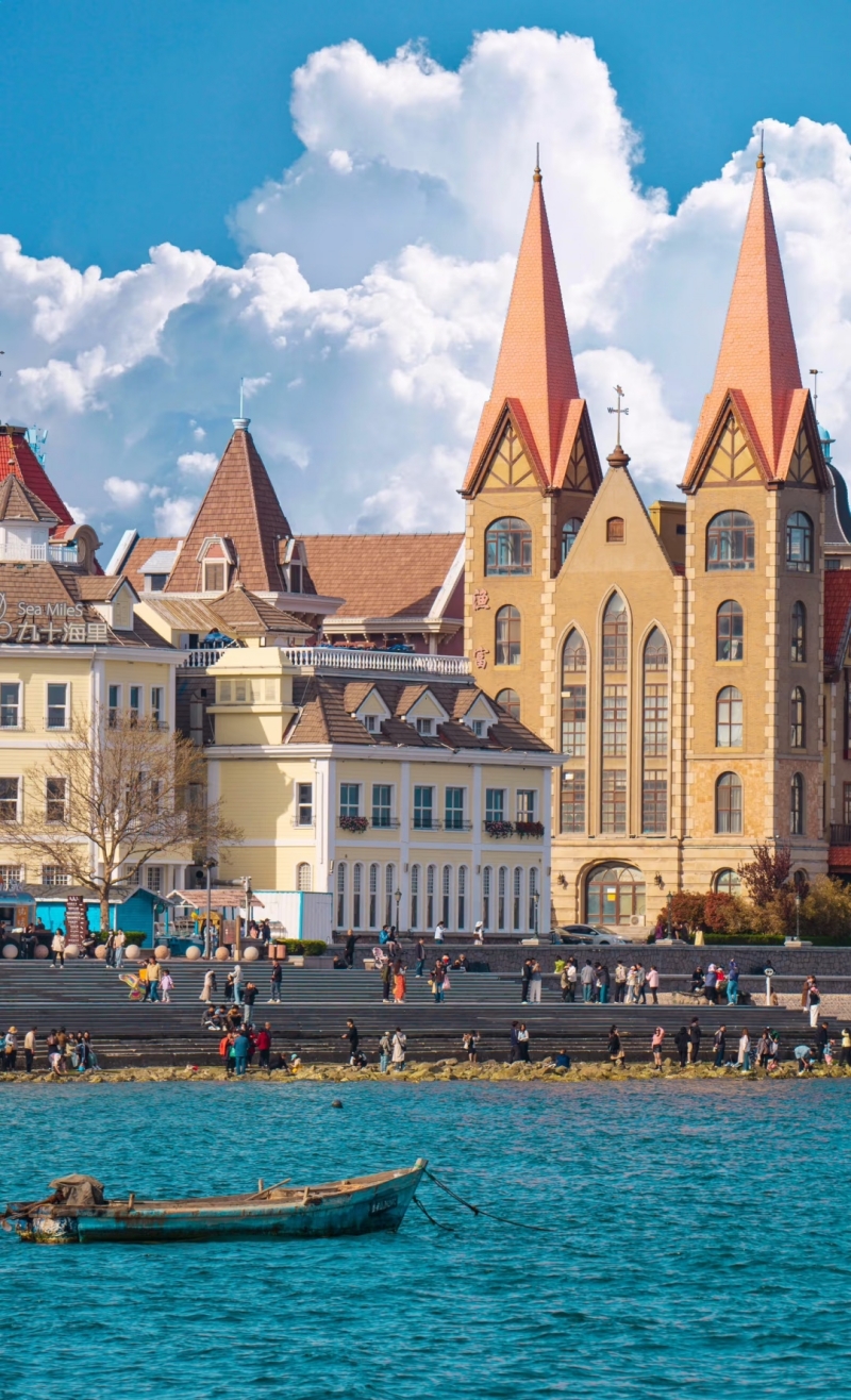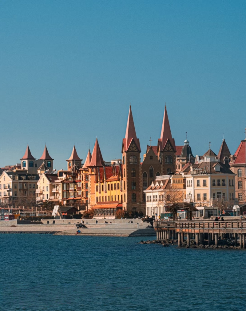 烟台渔人码头位于烟台市莱山区滨海路,毗邻第二海水浴场,是一座集旅游观光、休闲娱乐、餐饮购物于一体的欧风海滨度假综合体。其建筑风格以北美滨海小镇为蓝本,红顶木屋与碧海蓝天相映成趣,形成独特的拍照打卡背景。