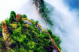 (1)早餐后继续出发,到达山西后首先游览黄涯洞:黄崖洞因山壁为黄色,东崖半腰有一天然石洞而得名。这里峭壁连绵数十公里,拔地而起,与举世闻名的美国科罗拉多大峡谷颇为相似,远看黄崖洞根本看不到进山的道路,走到峭壁前面,才发现有一条被称为“瓮圪廊”的S形的峡谷,长1.5公里,两侧高30米到200米,仰望只见蓝蓝一线,所以又叫一线天,这里是一夫当关、万夫莫开的雄关险隘。著名的黄崖洞保卫战就发生在这里;