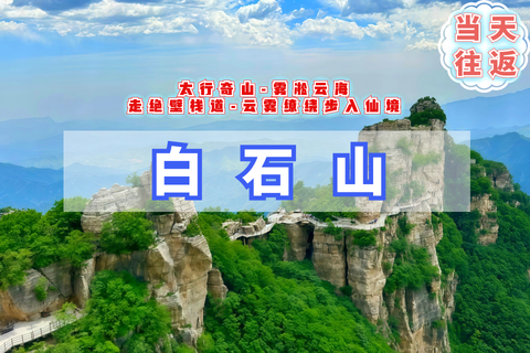 11:00 到达白石山景区,大家乘坐缆车到达山顶,在云端赏太行之首美景,看奇山怪石,中午云间午餐时间,尽情享受;下午继续欣赏美景,喜欢摄影的尽情创作,三步一景,五步成诗,十步入画,百步不胜在人间;16:30 集合返京;