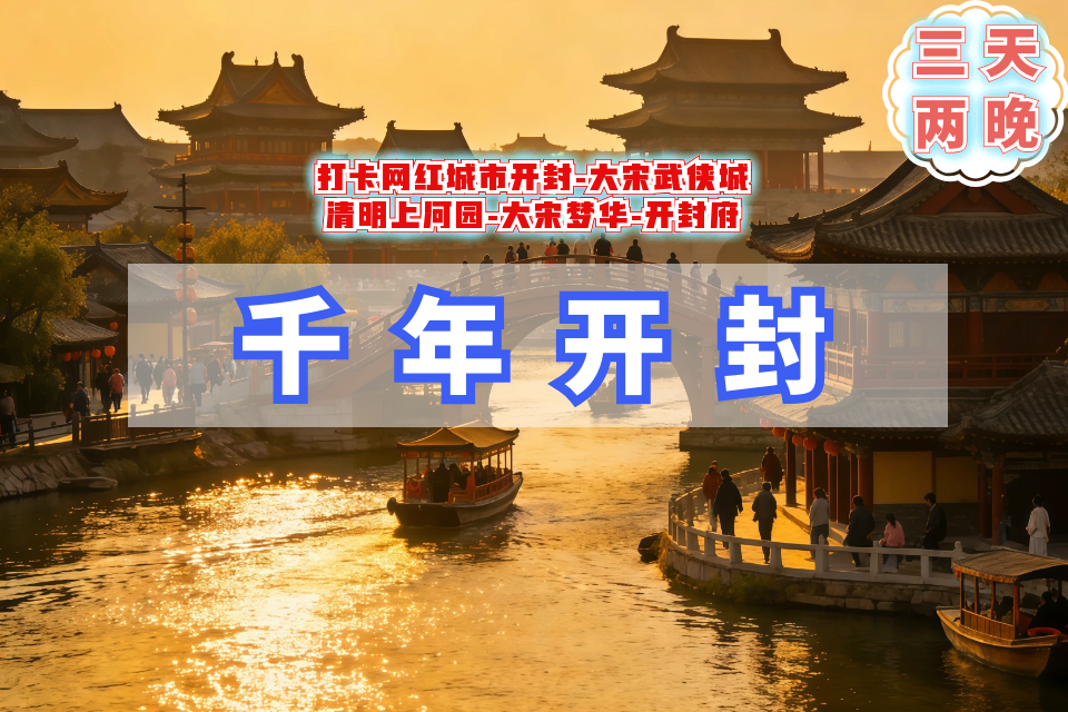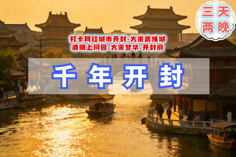 (2)上午游览大宋武侠城:大宋武侠城以宋文化、城墙文化和七朝文化为景观核心、以大宋武侠文化为旅游特色、以森林自然为格调、兼具休闲娱乐功能的多主题、多景观大型游览区。大宋武侠城常年推出『大宋武侠节•清明文化节』、『激情狂欢泼水节』、『地栽菊花文化节』、『万岁山春节大庙会』等活动四季不断。《七侠五义》、《猛龙过江》、《精武门》、《武松醉打蒋门神》、《十字坡》、《英雄救美》等几十台精彩大宋武侠实景剧全天循环上演。注:《王婆说媒》以实际演出为准;(3)下午游览清明上河园:清明上河园是根据宋朝名画《清明上河图》为蓝本而建造的大型宋代文化实景主题公园。高度还原清明上河图布景,由八个功能区和四个文化区组成。南苑再现了北宋东京的市井百态,北苑则表现宋代皇家园林和宫廷娱乐,园内的宫廷景观建筑金碧辉煌。园内工作人员皆穿着宋代服饰,仿佛穿越时空一般,除此之外还有精彩的场景演出和民俗表演。