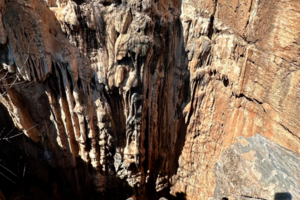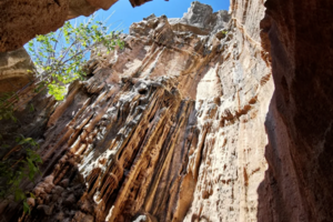 10:00 到达徒步起点,在领队带领下开始进山穿越:潭柘寺天坑并非单纯的天坑,而是一处独一无二的天坑+洞穴复合型地貌奇观。天坑中部有石幔、石帘、石柱、联排石柱、吊灯状石幔,串珠状石帘等。下部是一片石花(类似石花洞的石花)如挂在墙上的绣花壁毯;