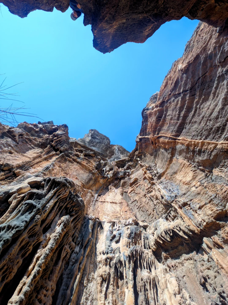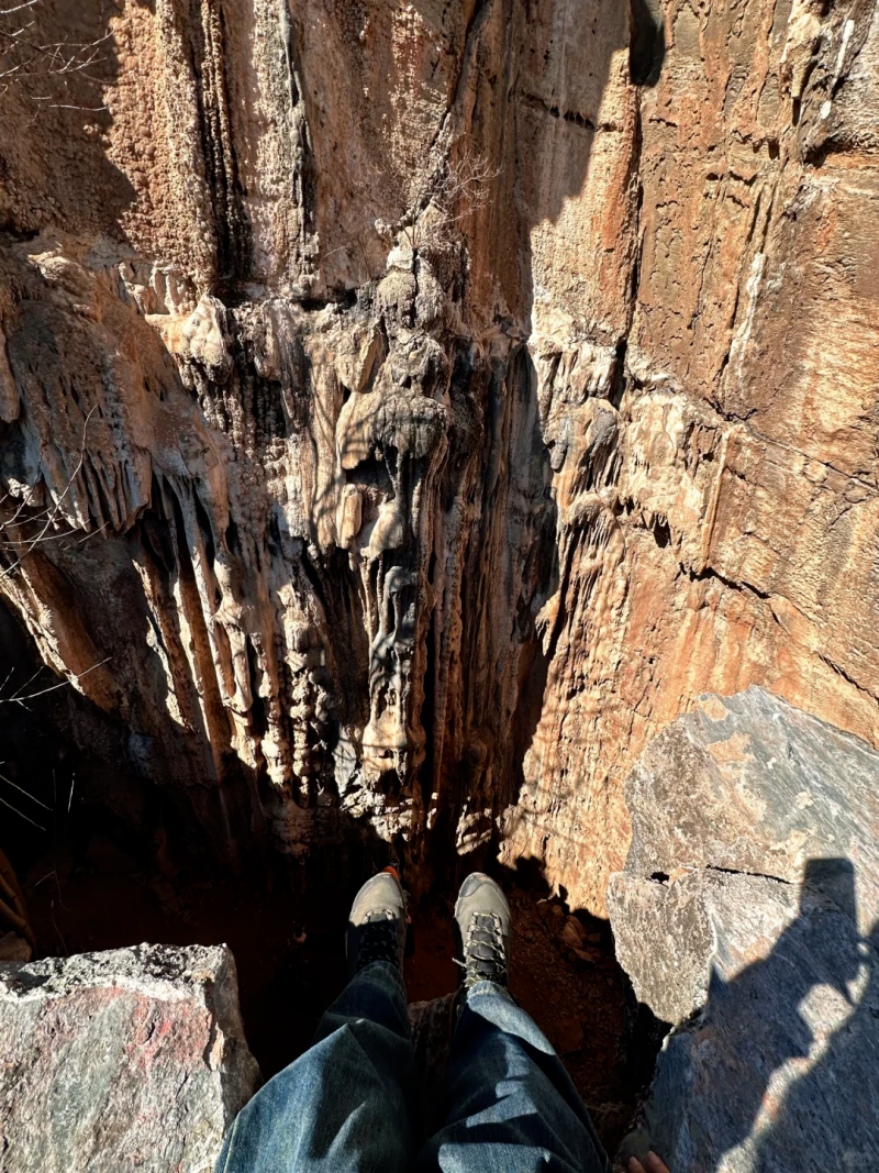 潭柘寺天坑仿若闯入地球的隐秘角落。它本是溶洞塌陷的遗迹,石灰岩层携着 4.4 亿 - 4.8 亿年前的故事,静静蛰伏于此。天坑不大,很好下去,拍照超级出片。狭小的坑口下,是纵深的奇幻天地,石笋、石柱拔地而起,钙华在壁上肆意蔓延,恰似大自然精心雕琢的艺术宫殿。